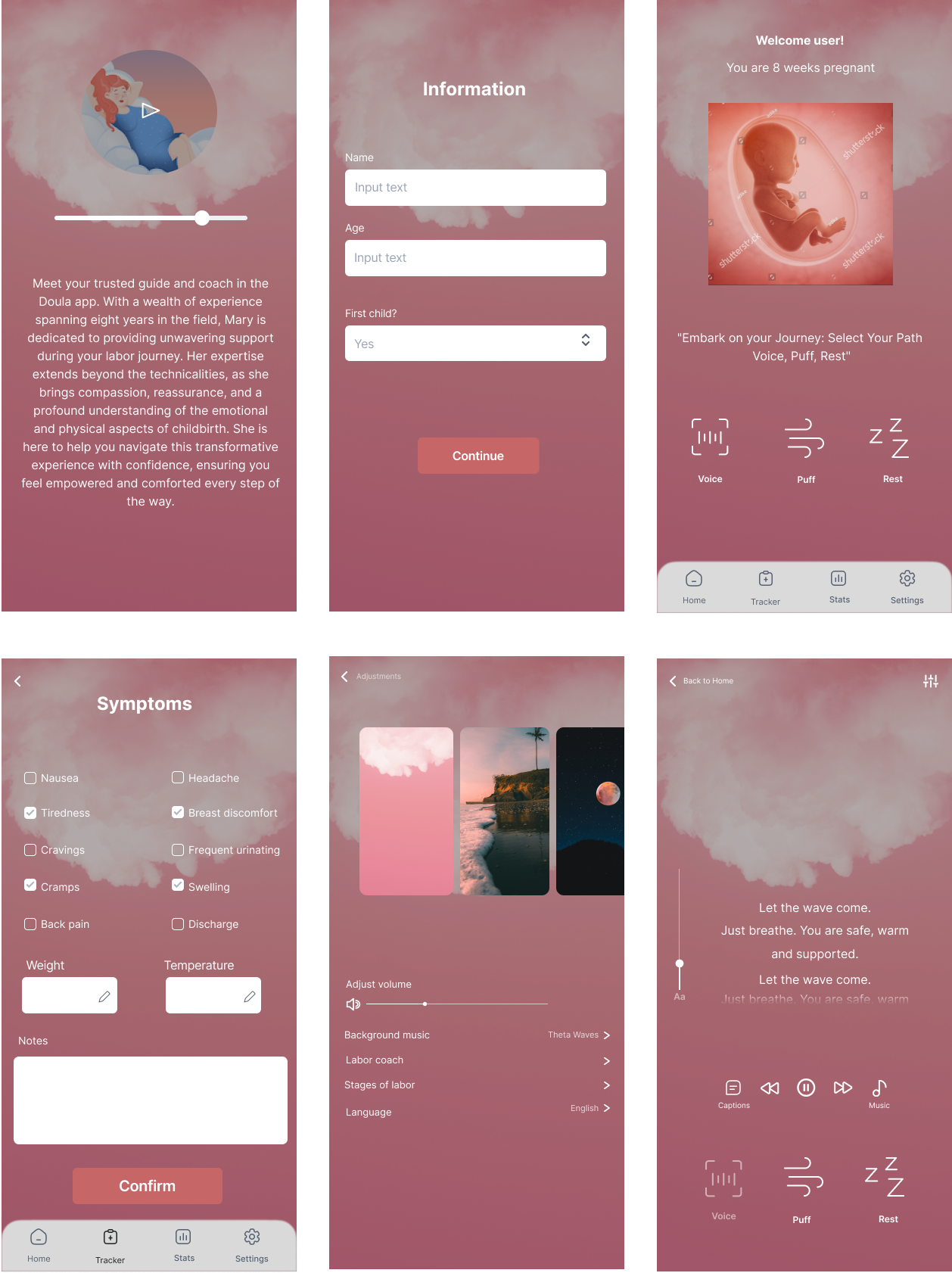 During the UX research, users expressed a need for improved readability within the app and the importance of clear and concise instructions within the app, especially during critical moments such as labor. A recurring theme in the user feedback was the desire for a personalized, calming experience within the app. Users expressed a need for features that promote relaxation.